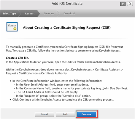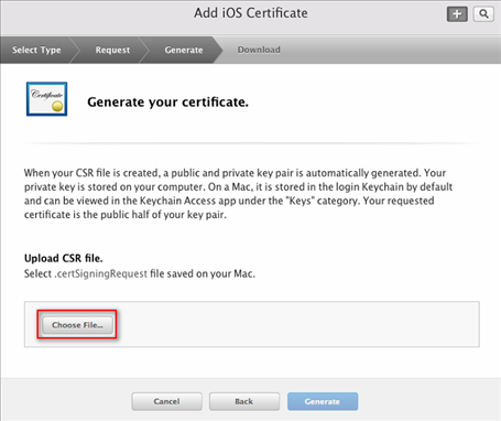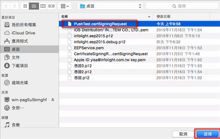 點選Choose File... 下一步,將前一步驟所產生的.certSigningRequest檔案匯入