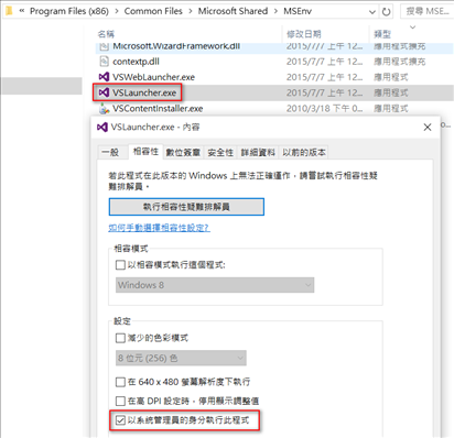 若MWizard2019.vsix執行後無反應需設定VSLauncher.exe執行權限,把 C:\Program Files (x86)\Common Files\Microsoft Shared\MSEnv\VSLauncher.exe 設定成以管理者權限來執行,再重新執行MWizard2019.vsix執行檔安裝