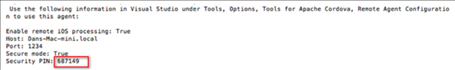 第一次啟動代理程式時,會提供您在 Visual Studio 中設定代理程式的必要資訊,包括主機、連接埠和安全 PIN 碼。