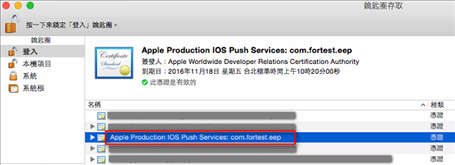 這時後需要設定一組推播用的密碼,當Provider向APNS要求連線時會需要用到