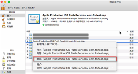 最後再輸入一次登入密碼以驗證身份,之後會將.P12檔案儲存到Mac電腦的指定目錄