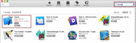 搜尋 Xcode ,點選取得,安裝時間約一小時左右。