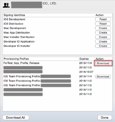 點選 Download,將 Profile 加入到 XCode,按 Done 結束