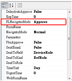 為了能讓「服務窗口確認」可以退回,因此我們將「服務窗口確認」的FLNavigatorMode由Continue改為Approve。