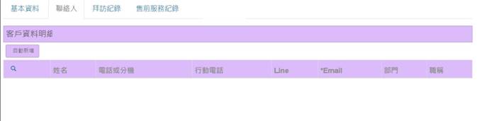 這是第二頁簽的聯絡人資料,可以輸入多個聯絡人,往下輸入售前服務紀錄的頁簽。