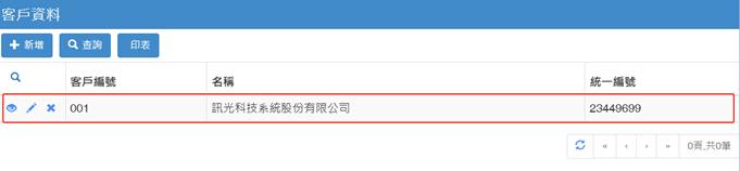 最後按下"確定"即可保存以上的輸入資料,如下的表格: