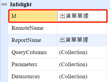 設定RemoteName屬性,資料來源與報表來源相同,選到