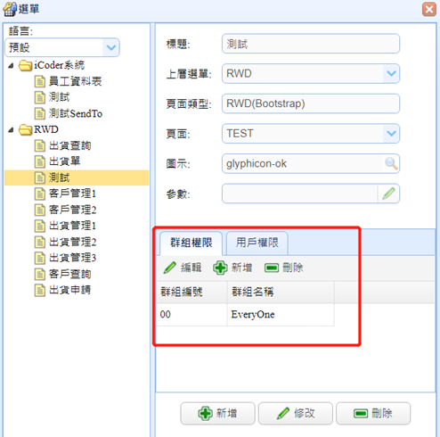 選單掛載完成後,接著設定能看到此選單權限的群組或用戶